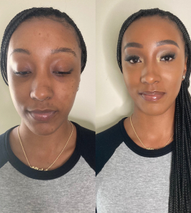 Includes: brows, foundation, subtle contour and highlight, basic eyeshadow, shimmer highlight, and lips. Lashes are included but you have the option of bringing your own.