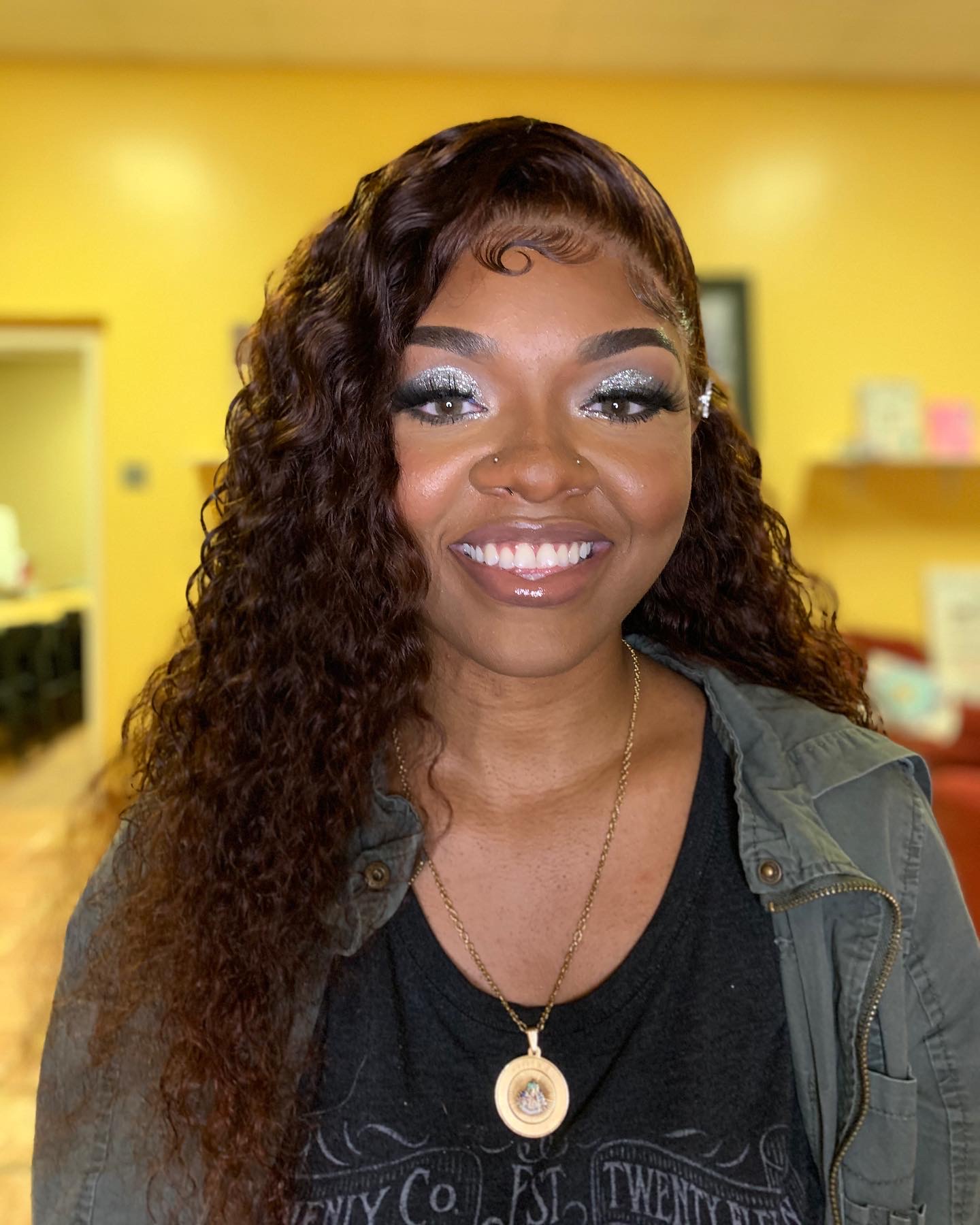This glam includes glitter, big mink lashes and a full foundation look.