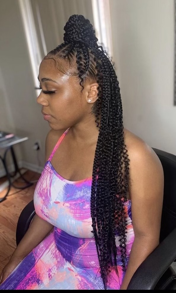 Beautiful for vacationing or just on a regular basis. This style can come with Knotless box braids in the back or regular Knotted.