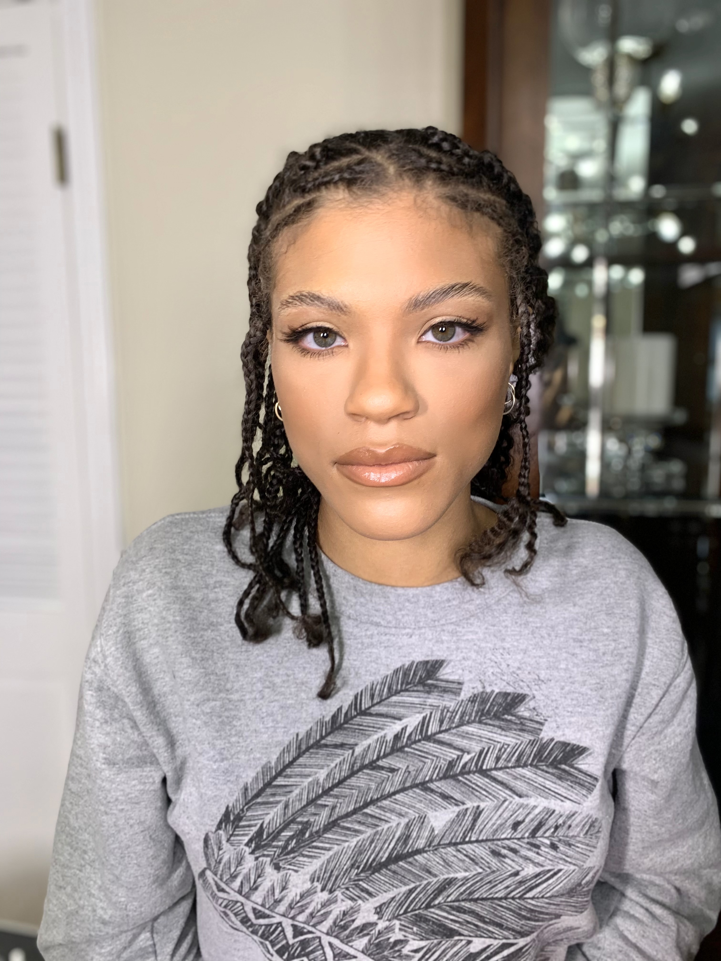 Full face makeup using long wear foundation. Lashes included.