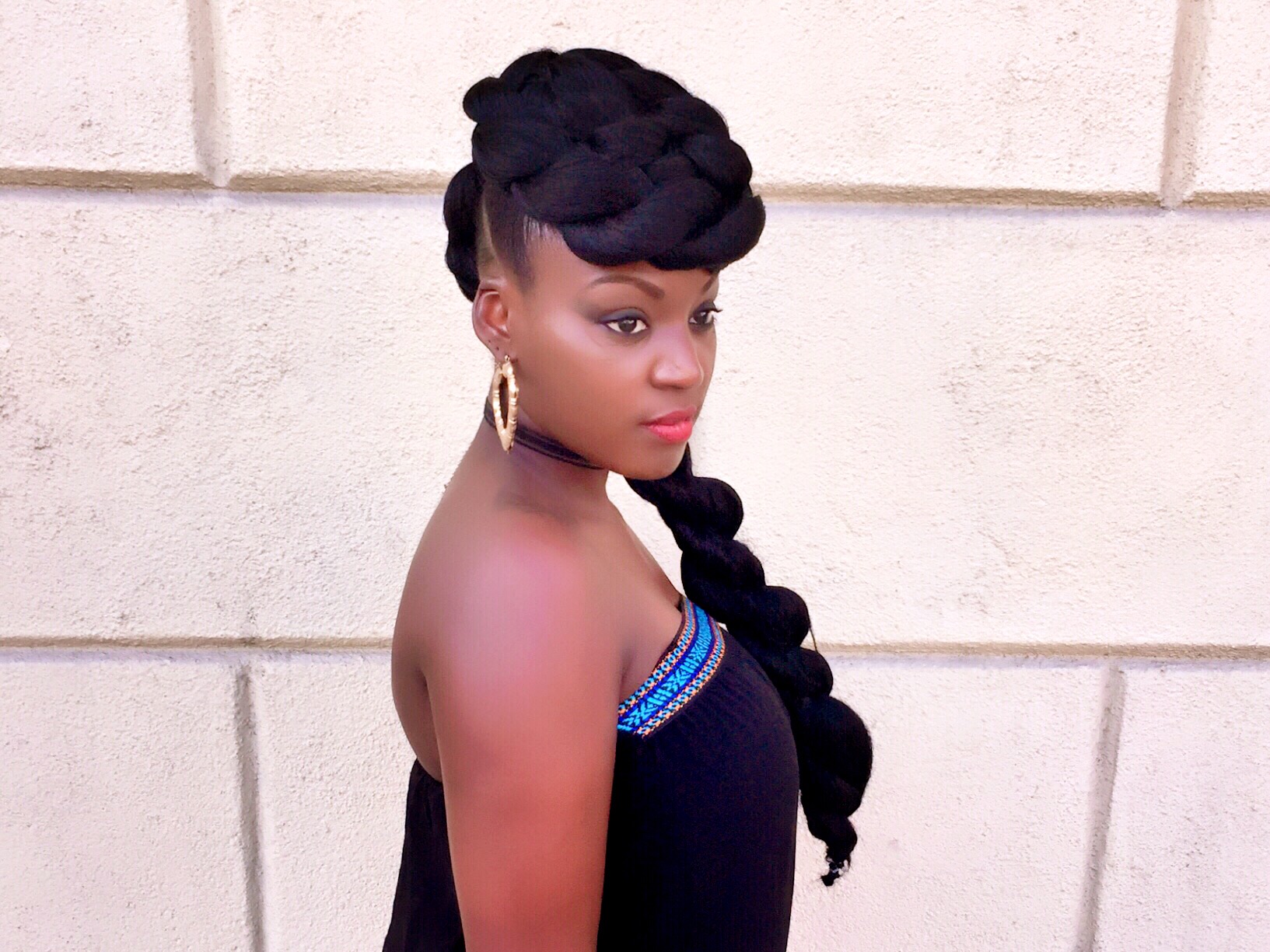 No braids added. Clients natural hair styled in an elegant updo for a special occasion. Hair can be added if clients hair is not long enough for style. Purchase 2 packs of expressions hair. Flat rate travel fee is included in price.