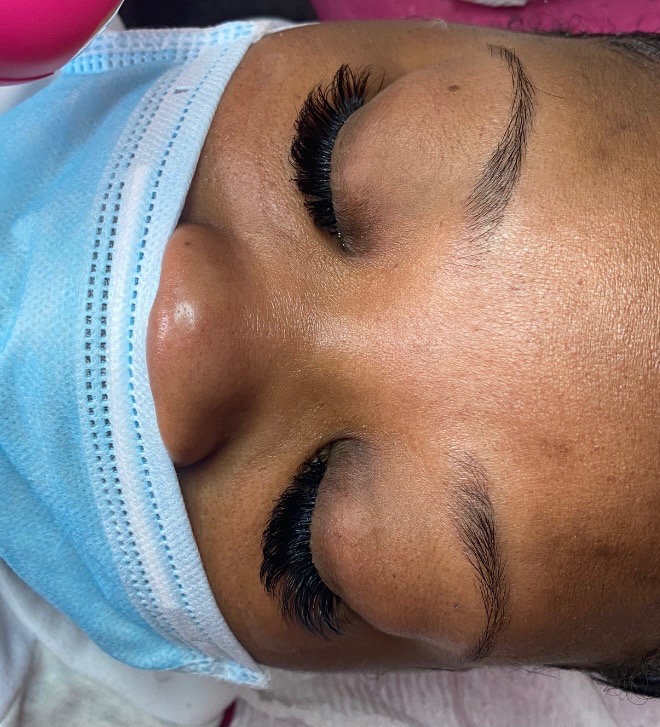 2-3 lash extensions made into a fan attached to each natural lash for a full effect