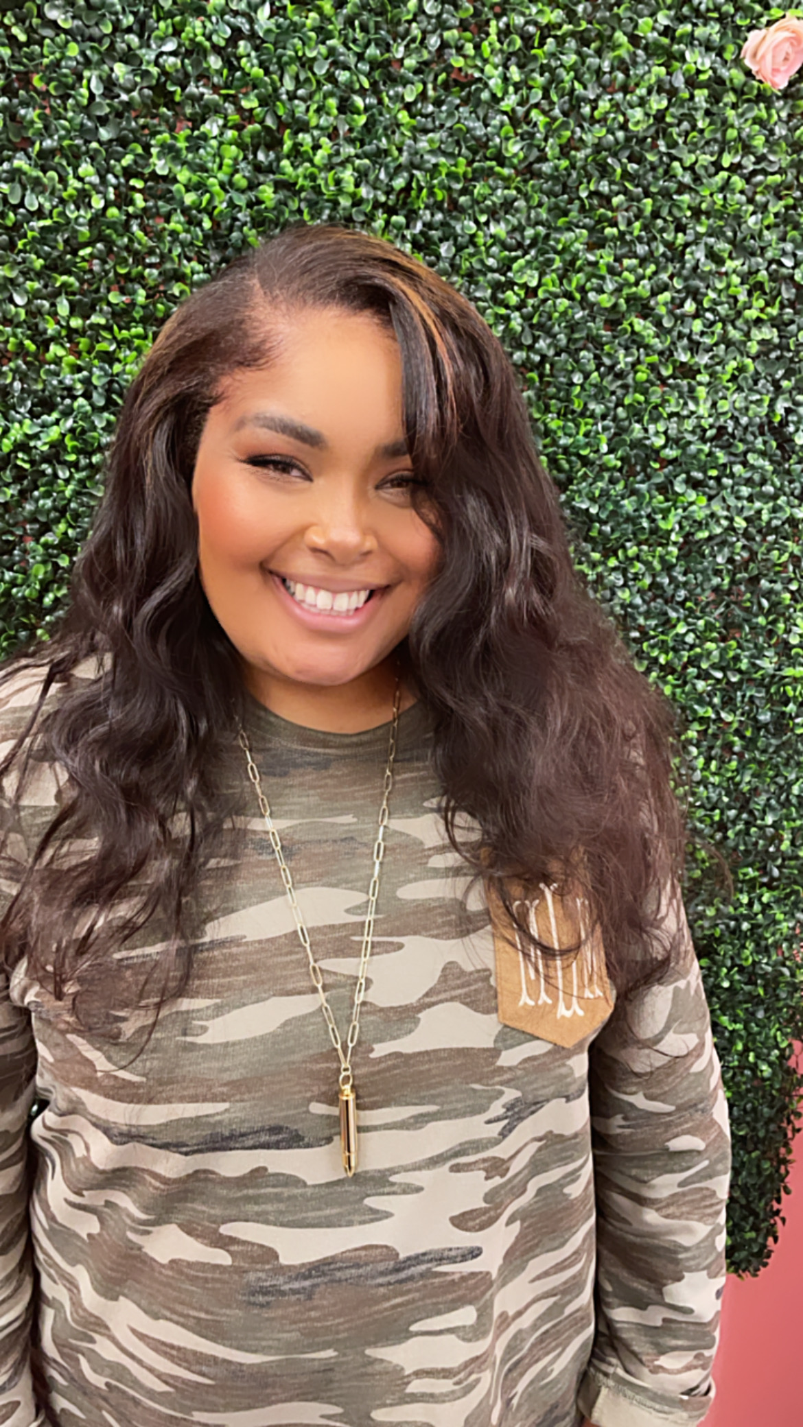 Traditional sew- in with hair left out for parting