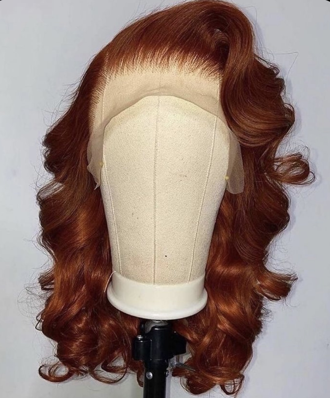 This is a custom unit. She’s a hot copper loose wave unit with the longest length ending at 18". Complete with a 13*4 frontal with your choice of lace (transparent or HD), bleached knots, and a plucked, seamless hairline (with no, minimal, soft or dramatic baby hair options available)